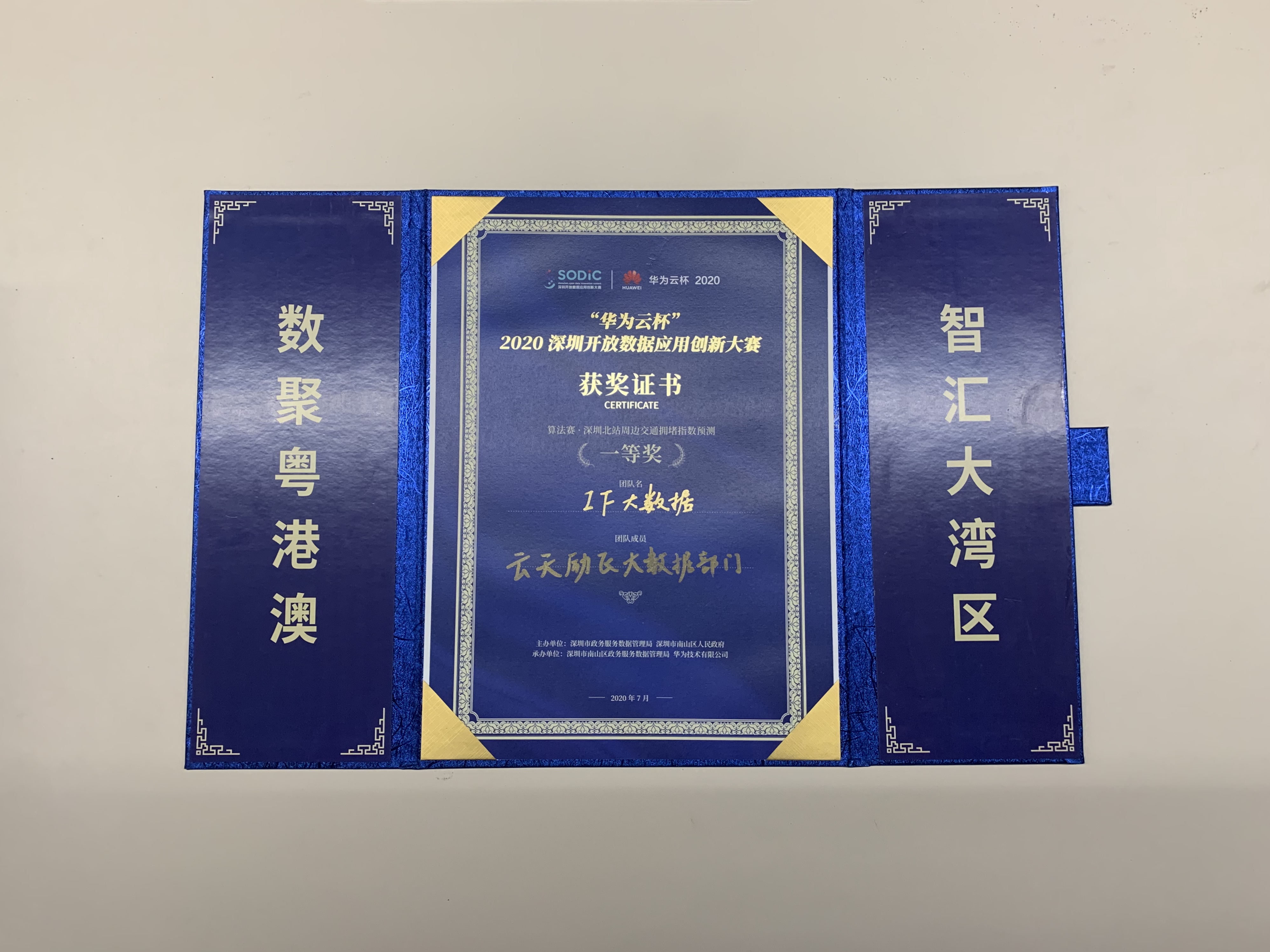 本次大赛共设置4个赛道,在以“深圳北站周边交通拥堵指数预测”为赛题的算法赛道比赛中,由918博天堂大数据部成员组成的“IF大数据”团队荣获一等奖。